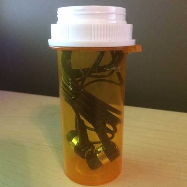 (38) los brotes del oído - mantener su audífono en una botella de la prescripción para evitar que el cable enredado y enredarse en las cosas. [8]