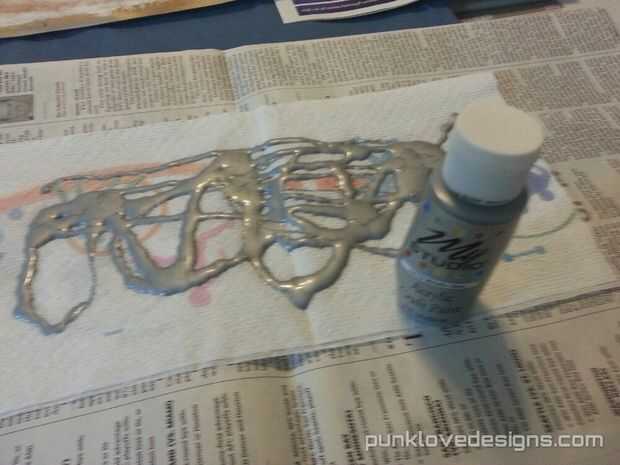• Tomar un regular servilleta o toalla de papel de tamaño suficiente para cubrir la superficie de la plantilla y aplicar una cantidad generosa de pintura a un lado (acrílico utilizado aquí).