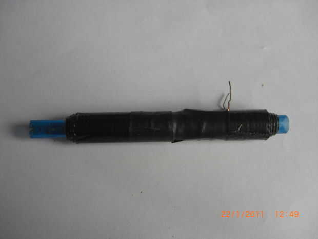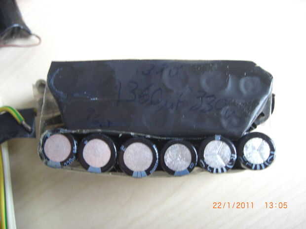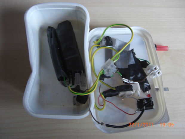 La soldadura en los dos cables más gordos se puede encontrar desde el Banco de condensador a la bobina y aislar todo el circuito con termocontraíble, cinta aislante y pegamento caliente del derretimiento. Usted no quiere cualquier posibilidad de que accidentalmente puede electrocutar a ti mismo. Le advertirá ahora, duele... MUCHO... y cuando ya tienes un banco de sobre 50J puede hacerte sensación muy malos. No es una experiencia agradable.