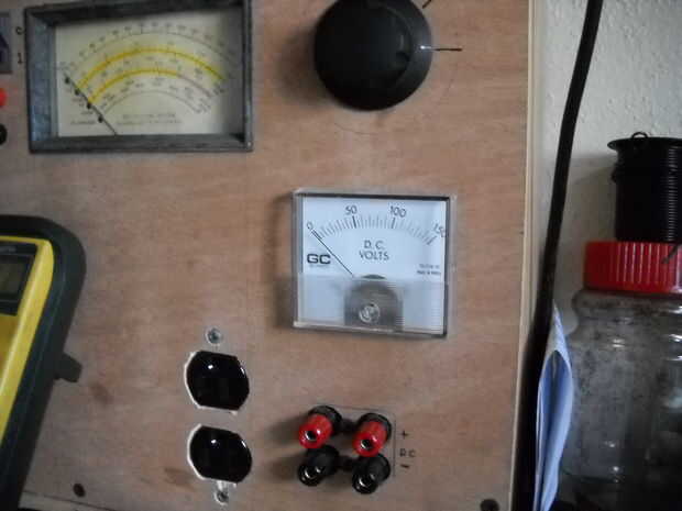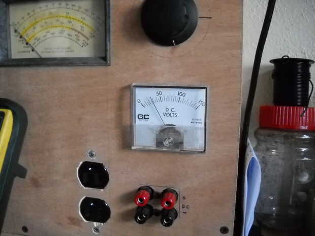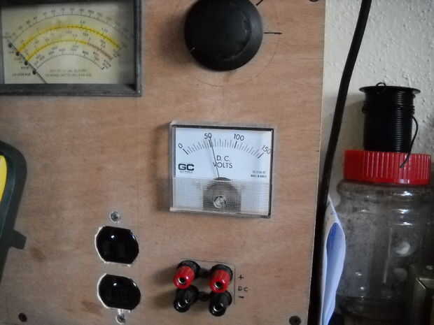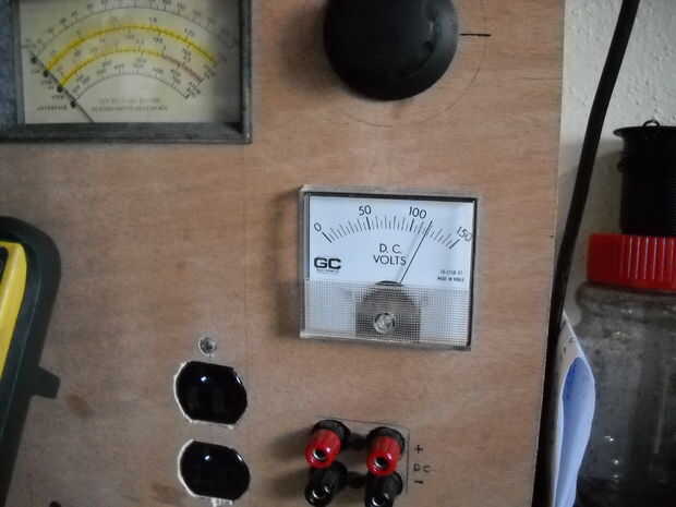 El medidor grande 0-150VAC todavía necesita una resistencia para evitar fumar en el interior de su carcasa. Medidor de ahumada no es muy bueno a menos que agregue sal y pimienta. Este medidor mida el voltaje en el tomacorriente.