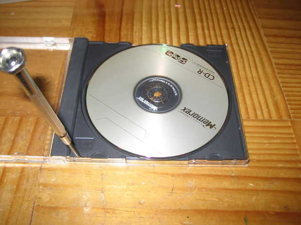 Este es bueno si usted tiene un montón de CDs alrededor. El primer paso es quitar la parte de plástico negro. He utilizado un destornillador de cabeza plana. A continuación si desea agregue un trozo de papel para que se vea "natural", entonces puede. Luego pegarla en una pila de CDs y tu bien.