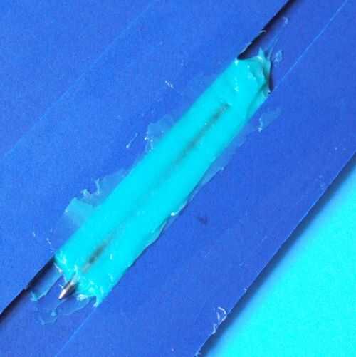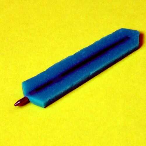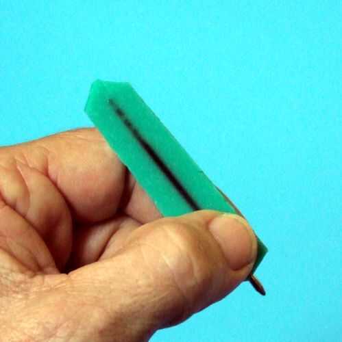 Incrustar el repuesio de la pluma y luego la solera otra vez. Después de él como configurar, retirarlo y cortarlo con cuchillo o tijeras a la forma que te gusta. Deje la pluma final suficientemente amplia como para ser captado fácilmente entre el pulgar y el dedo.