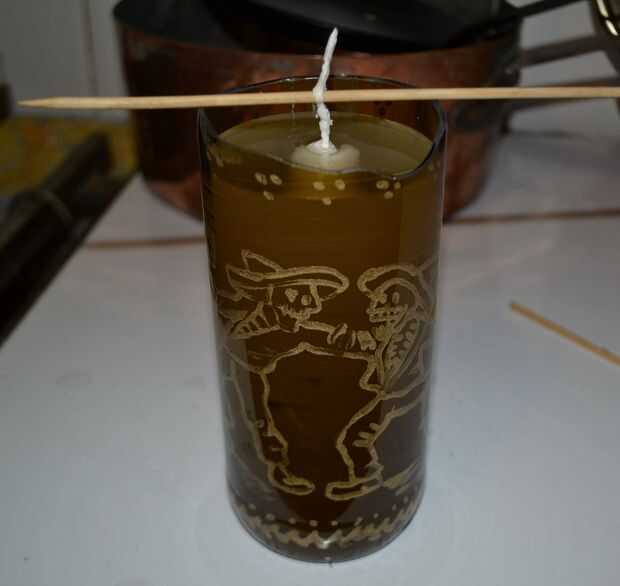 Después de seguir estas instrucciones, habrá reciclado de una botella vacía (cerveza, vino u otro) y la convirtió en una hermosa vela utilizando artículos del hogar en su mayoría. Un cortador de vidrio, cera y mechas son los elementos de sólo no domé