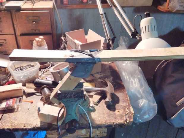 La base de este proyecto es el mango y el tablón de madera larga de 19 pulgadas. Cortar la madera en dimensiones de aproximadamente 2 * 19. Cortan el mango un ángulo que se sienta cómodo sosteniendo. Usando cinta adhesiva para sujetar las piezas en lugar de taladro o clavo sus tornillos y clavos a través de 19 pulgadas la pieza en el mango.