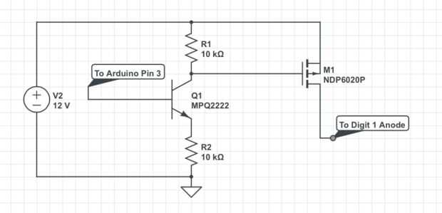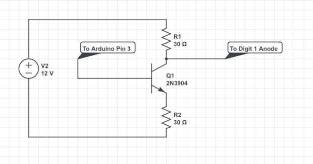 Los displays de 7 segmentos de Sparkfun son ánodo común y por lo tanto abastecimiento actual a la pantalla fue un gran reto (cátodo común habría sido mucho más fácil). Dos esquemas están incluidos para que pueda ver donde fue mal con el primer diseño. El mejor diseño había incluido MOSFETs.