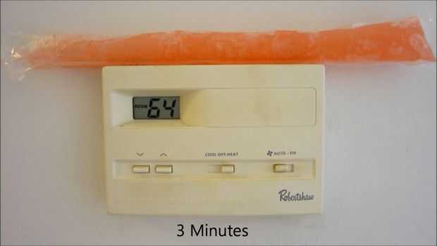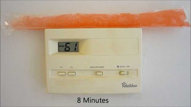 Un termostato detecta solamente la temperatura en el termostato sí mismo. Esta es una razón por qué diferentes partes de un edificio son a menudo diferentes temperaturas. Así que si pones hielo cerca del termostato, se piensa que la habitación es más fría de lo que realmente es y encender el calentador.