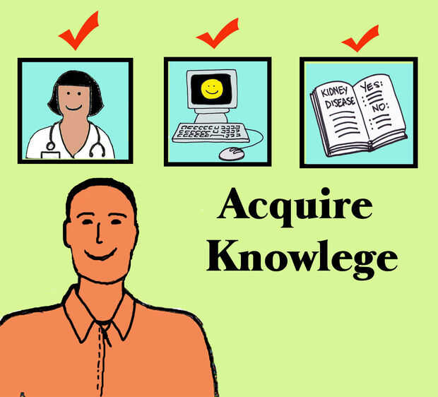 Investigación de la enfermedad, recetas y sus efectos secundarios y cómo la dieta y el ejercicio afectan su salud. Su médico, el Internet y su biblioteca local son grandes recursos para el conocimiento que le ayudará a identificar su plan de acción personal. Algunos recursos útiles para obtener información sobre sugerencias de riñón enfermedad, dieta, recetas y estilo de vida son: