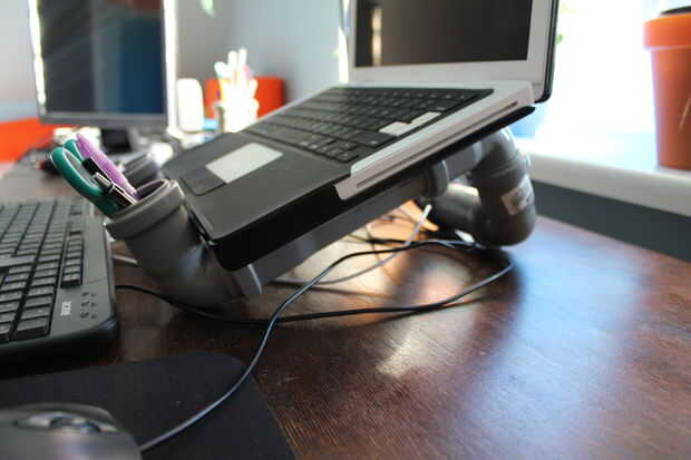 tengo esta IDEA de INSTRUCTABLES otros y aplica para una PVC portátil de mesa que he modificado para el uso de cómo nosotros (mi familia) sobre todo usar la laptop en una posición horizontal.Sabemos que su mal le cuerpo, postura y peor para el ordena