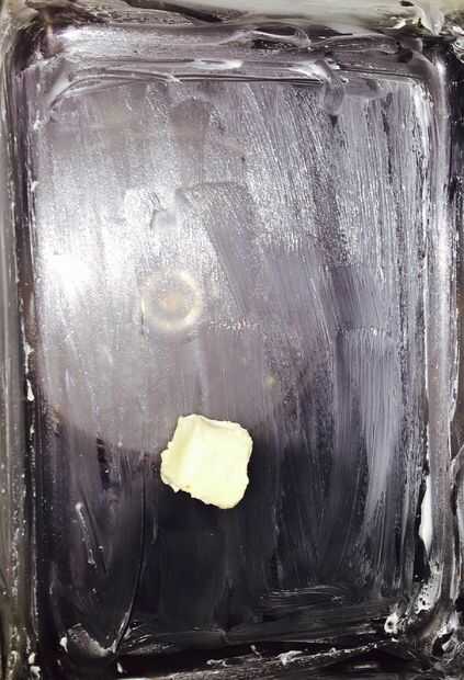 Usando 1/4 taza de pan de grasa de mantequilla. Derretir la porción restante de mantequilla y vierte en el fondo del molde para cubrir uniformemente.