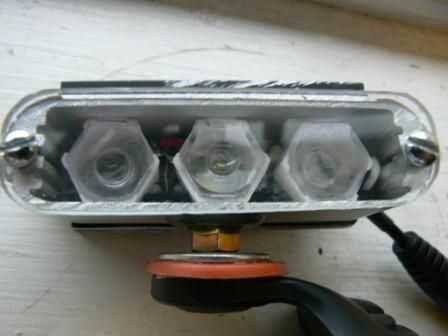 Pegamento A. lentes en sostenedores de la lente con 460 Loctite superglue (pegamento regular será heladas las lentes con una película blanca causada por vapores mientras se seca). Usé un lente de inundación en el centro y lentes de punto en cada extremo.