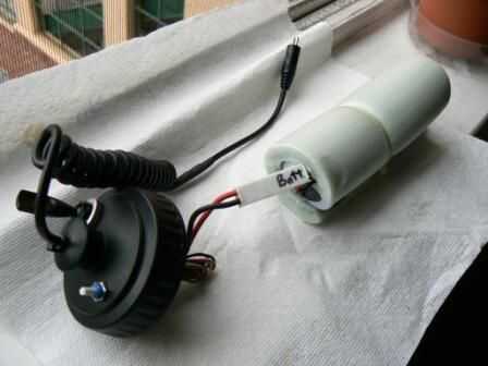 Se muestra en la tercera foto es el conector de 2 pines que viene con el cargador. Esto era soldado al cable en espiral a través de la boquilla de la botella para conectar a los LEDs.