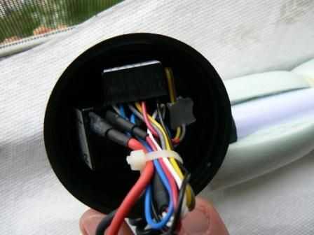 A. primer foto muestra el mazo liado y zip-atado debajo de la tapa de la botella. JB Weld fue agregado a la atenuación de cables pot para alivio de tensión.