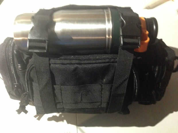 Espacio mantas, poncho, bolsa de basura, grifo de gorila, luz de flash de led, baterías y fuego suministros partidas deben encajar en una de las bolsas laterales.