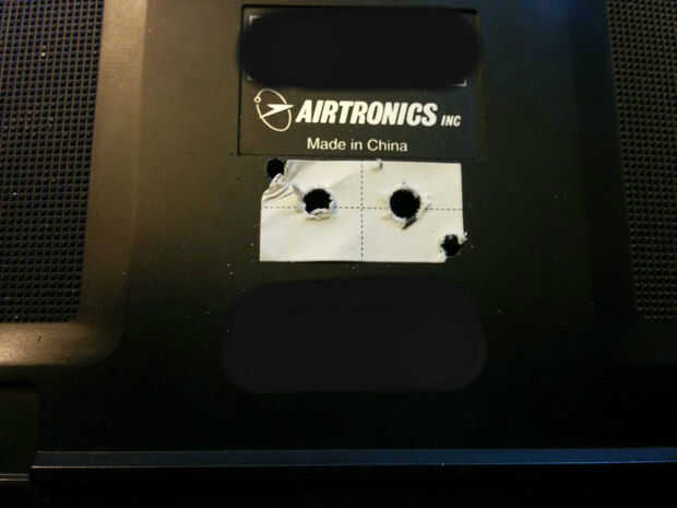 Utilice la plantilla suministrada para perforar los agujeros para el circuito de enlace en una buena ubicación. Utilice una broca de 5/32 o 11/64 pulgadas para los agujeros del botón y LED y utilice una broca de 5/64 y 3/32 de pulgada para los orificios. Este kit viene con dos tornillos y 6 tuercas. Utilice una tuerca en cada tornillo para garantizar en el caso de la radio. Luego use la otra tuerca para ajustar la altura de la placa de circuito, se instalará el circuito y utilice la tuerca restante para sujetar la Junta a la tuerca anterior. Apriete juntos para mantener la Junta de enlace en su lugar.