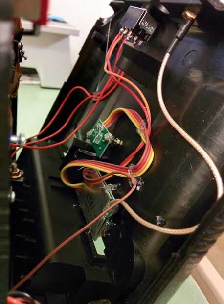 Monte la antena a la caja de radio o radio circuito con pegamento caliente o epoxi, módulo y cables. Esto es un poco complicado porque el caso de radio debe estar parcialmente cerrado debido a los cables ya siendo soldados en este momento. Si el montaje a la placa de circuito de radio, asegúrese de utilizar un pedazo grueso de plástico para separar antes de pegarlas.