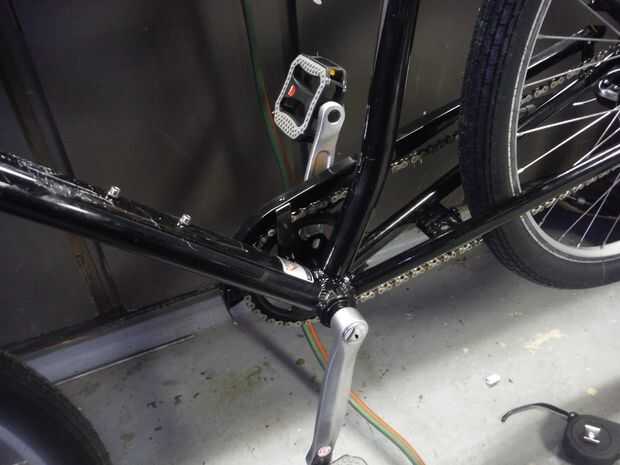 Los vástagos deben ser capaces de limpiar el motor y el eje de Unión una vez que se monta en la bicicleta. Si usted tiene un marco de 21", esto probablemente no será un problema. No te preocupes por no poder poner los pies sobre los pedales con el motor en su lugar, podemos extender los pedales con piezas de metal si es necesario.