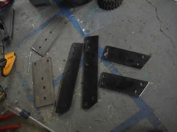 Por desgracia, hay no hay manera de cortar las piezas de la abrazadera de montaje "one size fits all". Sin embargo, la idea general sigue siendo el mismo para todas las bicicletas. Tiene una abrazadera horizontal volviendo, una abrazadera avanza horizontalmente y una abrazadera va verticalmente hacia abajo. Mira las dos primeras imágenes, cada uno muestra la misma configuración de montaje general. La tercera imagen muestra las diferentes piezas que necesitará. Hay 3 sets de piezas, cada uno con 2 duplicados exactos de cada uno. Tenga en cuenta que sólo la posición de los agujeros debe ser perfecta, si una pieza es de 1/4" más largo que otro, no importa siempre y cuando los orificios se alineen. Para asegurar la alineación del agujero apropiado, taladre los orificios en la primera pieza, luego sujete los dos juntos y utilizan el primero como plantilla para el segundo.
