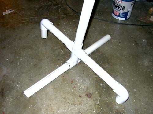 El interior primero se midió el ancho de la caja y el ancho de los conectores de la Cruz y tee. El conector tee que compré era cuatro pulgadas de ancho, mientras que el conector cruzado era 4 1/4 pulgadas. Las piezas de PVC fondo eran 9 1/4 pulgadas cada uno. Para los travesaños superiores corté la parte delantera para ser 8 pulgadas y el volver a ser de 5 pulgadas, esto permitió que la base del gato a ajustarse un poco más atrás en la caja. Los codos de 90 grados entonces se conectaron a los travesaños superiores, con pequeñas extensiones para estabilizar la base. En la parte delantera, la pieza es de alrededor de 2 pulgadas y la pieza trasera es cerca de 3 pulgadas, esto hace que Jack se inclina fuera de la caja al mismo tiempo sobre una base estable. La base fue construida en gran parte a través de ensayo y error de montaje hasta que era estable y estaba contento con la cantidad de inclinación hacia adelante. Una vez que estaba contento con la base pegué todas las piezas con el cemento de PVC, asegúrese de que seguir las instrucciones en la lata como cemento de PVC tienen vapores muy tóxicos, así que permiten un montón de ventilación.