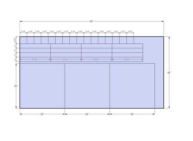 Para el ajuste de los paneles se puede utilizar la madera restante de los paneles. Usted tendrá que cortar cuadrados de 20 y 20 piezas rectangulares. Puede que necesite utilizar la madera restante de dos hojas para cortar todas las piezas. Para mi caja, termino usando 3/4" retazos de madera que tenía disponibles, para dar a la caja un mayor relieve entre los paneles y la moldura.