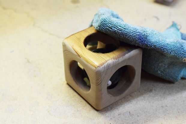 Terminé mi cubo con una mezcla de cera de abejas aceite encontrada en línea. Aplicar liberalmente con un trapo. Usé este acabado por dos razones. Si había agua dentro de la madera no quería atrapar allí y el acabado que burbujea el riesgo, y no quería que cualquier acabado para cambiar el aspecto y la suavidad de la bola 8.