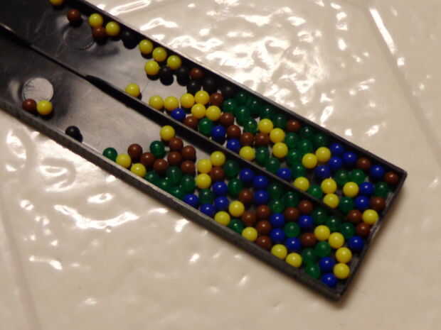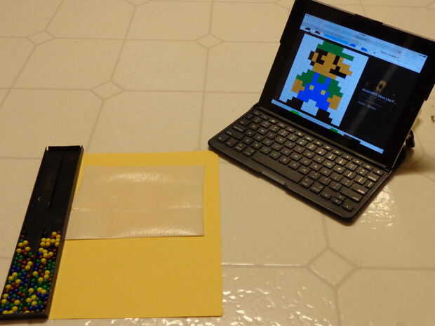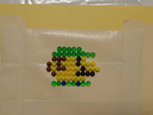 El tablero de prototipo que hace y con su colección de BBs. Fui por delante y recogido todos los colores me necesitan y ponerlos en una bandeja pequeña. Ahora, mientras observa su patrón en la pantalla, coloque sus BBs según color, fila por fila. Esto le llevará unos 10-15 minutos. Una vez que tienes todo mentido, asegúrese de que su patrón coincide con la que se basa el modelo de. Una vez que todo está establecido correctamente, estás listo para comenzar a pegar.