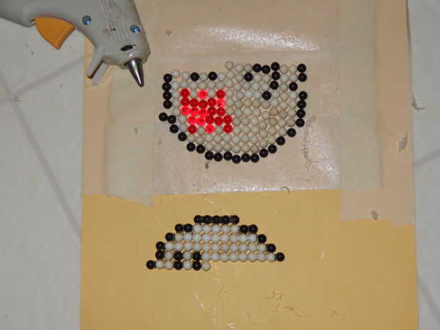 Ahora, voy a hacer otro modelo, Boo, utilizando los mismos pasos que he mencionado. Voy a usar el mismo tablero del prototipo ya que es todavía pegajosa. Todo lo que tengo que hacer es encontrar un patrón, diseño mis BBs, les pegan, reforzarlo y limpiarlo! Puede ver todo el proceso para Boo en las fotos anteriores!