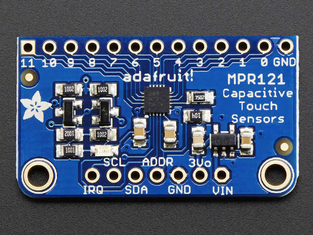 Una vez obtienes el chip demostrado en el cuadro anterior, se someta a prueba para comprobar realmente funciona. Simplemente descarga el código de ejemplo y la biblioteca a través de este enlace y luego ver que el sensor sabe cuando están tocando uno de los pin-outs y que le toquen. Para ello, podría tener unas pinzas de soldadura primero Conecte Vin y GND a la corriente y tierra respectivamente, así como IRQ y SDA a A5 y A4 en consecuencia.
