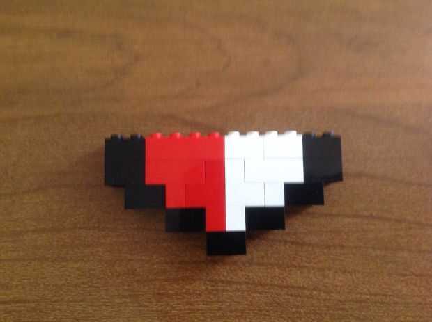 En este orden, colocar un ladrillo negro de 2 x 2, 4 x 2 rojo ladrillo, un ladrillo de 4 x 2 blanco y un ladrillo negro de 2 x 2 encima de la cuarta fila.