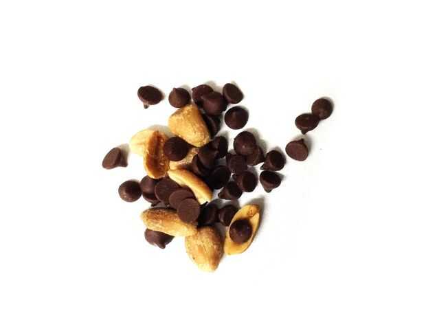 Mezclar a partes iguales de cacahuetes tostados y salados y chips de chocolate.