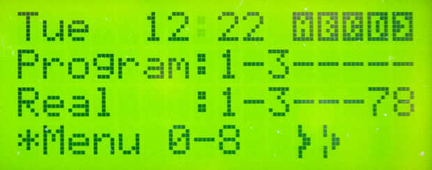 Muestra los canales que se han convertido los diferentes programas. Los canales se muestran en sus números de la salida y un "-" indica que no se activa la salida específica. Canales que han sido desactivados en el "programa de salidas activas" todavía se indicará aquí, pero los resultados reales no se establecerá.