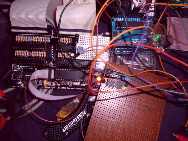Estoy trabajando en un módulo de música activa que puede Agregar a nuestros 32A con cubos (Arduinoites lo siento!) y puede construir en mi próxima versión PCBoard - pero que puede ser por lo menos un mes. Derecho, es sólo en la etapa de "prueba de concepto". Se ve prometedor, pero hay un montón de trabajo por hacer todavía y muchos diseños de circuitos para probar. Me gustaría hacer básicamente algo que es todo analógico pero no he hecho ningún análogo en un tiempo, por lo que en este momento, mis prototipos un Arduino o ATTiny85 alimentación los gatillos de música al cubo. Creo que es demasiado divertido afinar el código en 2 controladores para obtener los resultados que quiero, por eso quiero eliminar el controlador externo y alambre duro solo todo. La otra cuestión es que las entradas restantes solamente en la 32A son pines digitales en PORT D, y realmente no quiero volver a codificar todo para liberar un pin a puerto. Son todos felices que sirve como salida de datos para los seguros.