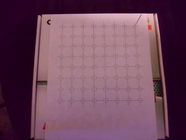PRUEBA el LED antes de quitar la capa de la plantilla de cartón mediante la conexión de negativa de su poder suministrar a la rejilla del cátodo y poner una resistencia de 100-330 ohm a su fuente de alimentación de 5V, y toque el otro cable de la resistencia a cada uno de los ánodos de 64 para asegurarse de que cada LED luces. Reemplace cualquier LED que no funciona si el problema no es una Junta de soldadura.