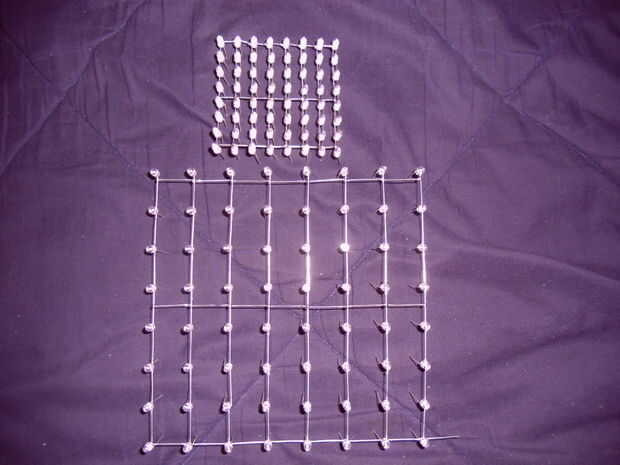 La idea hubiera sido (y es), hacer una cuadrícula con espaciado de 26 mm e imprimirlo. Los conductores de cátodo deben reunirse al soldarlos más o menos perfectamente, o con una muy pequeña cantidad de traslapo.