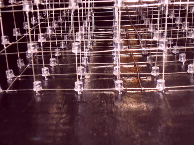Pensé que necesitaba 64 cables para los ánodos, además de por lo menos 8 de los cátodos. He utilizado 2 pins por cátodo en los controladores que he diseñado porque estaba preocupado por el actual - pero ahora sabemos que no es realmente un problema. El diseño todavía utiliza 2 pernos por cátodo pero porque hace un incluso 80 pines/cables y 40 conectores son abundantes, y permite utilizar cables viejos de CD-ROM para conectar el cubo a la base. Esto también se acomoda para 40 conectores que tengan una falta pin "clave", porque el pin que falta es uno de un conjunto de líneas de cátodo capa.