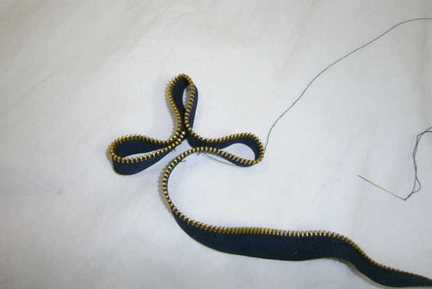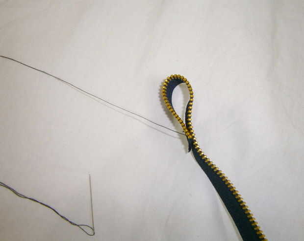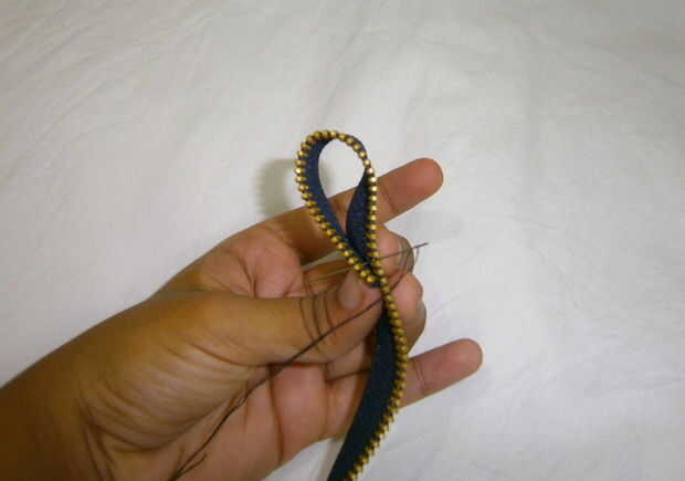 Haga un bucle en un lado de la cremallera. Debe ser la porción del metal en la parte superior.