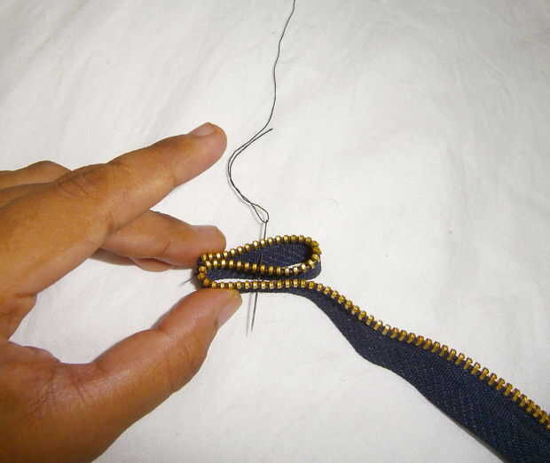 Coser por el centro. Seguir añadiendo bucles más pequeños abajo.