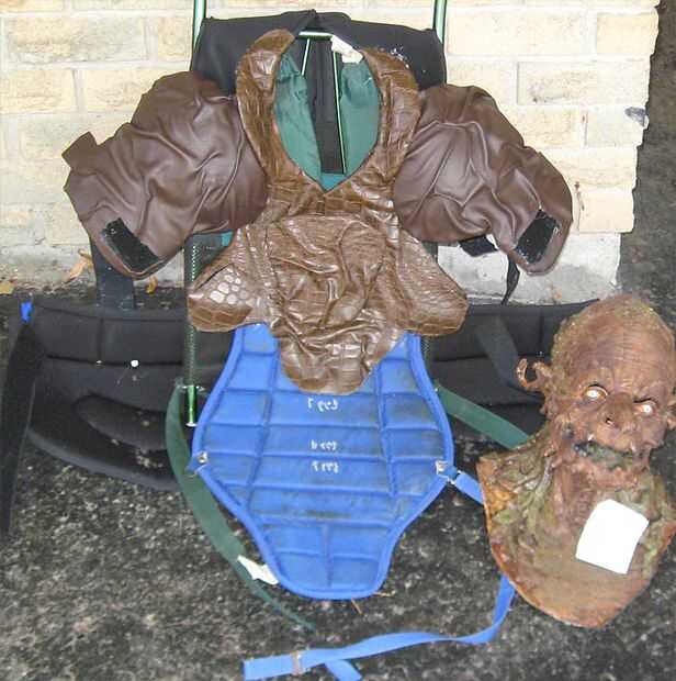 El resto sólo es tedioso trabajar nada creativo. Ahora basta tomar trozos de vinilo y cubrir todo. Especie de seguí el blindaje de los equipos de deportes para el tamaño de piezas. Básicamente puede envolver el vinilo alrededor de las placas de la armadura y el cemento de goma (si el vinilo es de plástico, pegamento caliente se descosen después de una semana de orso, pero lo uso para algunas áreas de perdida una vez que terminé. Mi vinilo tenía cierta textura peluda en el lado malo para que pegan bien en su mayoría. Quieres ser muy arrugada cuando hagas esto para conseguir esa textura de corteza. Mi vinilo no era exactamente como la máscara, pero tuve algunas piezas de escala bonito cocodrilo que estaban cercanos, así que usé alrededor del cuello como transición. Funcionó bien. Había encontrado un rollo entero de vinilo para un 1,25 por yarda, así que fue generosa con él. Cortar un pedazo más grande envuelto alrededor de cada placa de armadura pegada en la parte inferior y corte el sobrante. He probado algunas piezas superpuestas en el pecho por lo que parecía más corteza como. Utilizar piezas más pequeñas alrededor del cuello para obtener la sensación escultórica. Pinte las orillas, correas, etcbrown o negro para ocultar los errores.