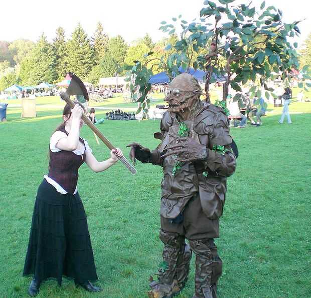 Era un traje espeluznante en un bar oscuro y también en una feria de ren en los árboles en un día muy soleado. Usted podría estar parado al lado de los arbustos y la gente no vemos y luego salir y asustar.