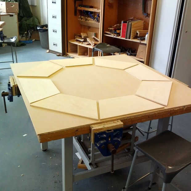Lo que hace esta tabla fácil (y barato) es que tiene un una tabla de 1220x1220mm como punto de partida que sale por un único 18x1220x2440mm tablero MDF cortados a escuadra.