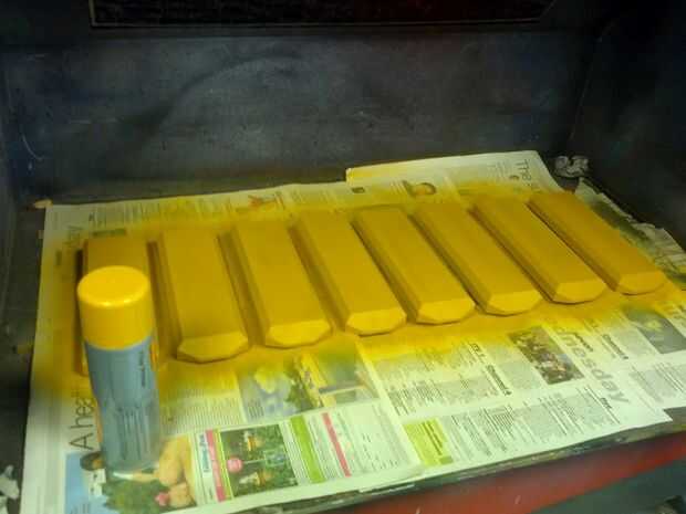 Una propina (algo obvia) aquí es algunos pedazos de desecho en los fondos de su división con cinta adhesiva para que se levantan por encima de la superficie mientras pintas, de esta manera la pintura irá debajo de los bordes un poco y usted no tendrá que preocuparse por ello conseguir pegado a la superficie que es acostado.
