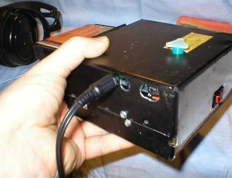 Aquí es con la carcasa exterior. Encendido/apagado en la parte posterior. Agujeros cortados para auriculares toma y volumen la perilla del lado de la placa de circuito de Walkman.