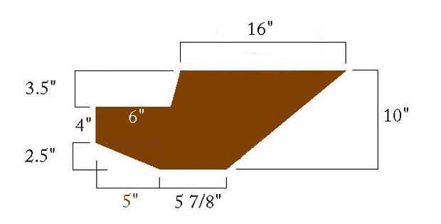 El montaje delantero de ala es 3/4 "x 2" ancho 5 3/8" largo madera sólida, atornillado y pegado en lugar.