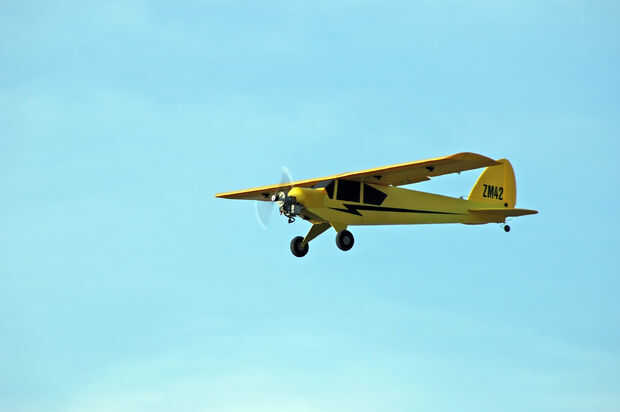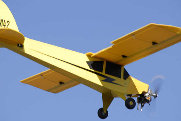 Mi primer vuelo corrió el acelerador y tomó al aire y subió lentamente hacia fuera, había hecho una vuelta lenta y notó que más cae en una vuelta que cualquier avión de balsa. No usé ninguna aletas.