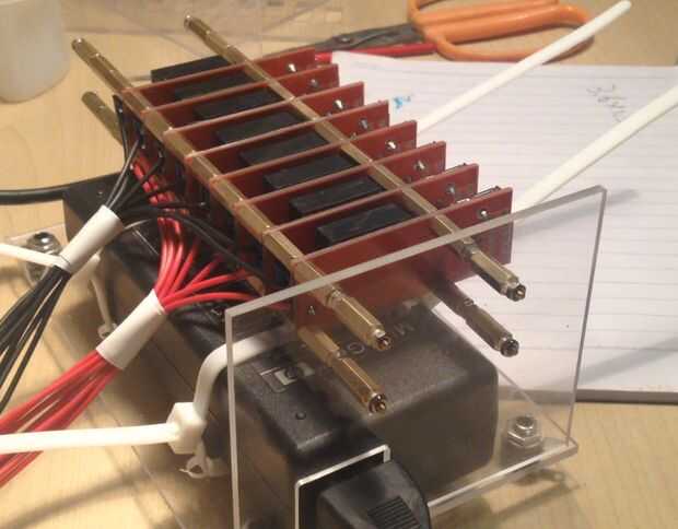 Atadura de cables de uso para fijar el adaptador a la placa base y asegurarse de que es inamovible. Poner los cables en orden y luego atar con el lazo de cable. Todas las tarjetas de la caja con el pegamento PMMA excepto la tapa del pegamento. Revise los cables de nuevo. Si no hay ningún error de conexión, tapa la caja con la tapa.