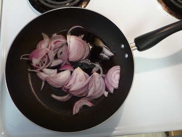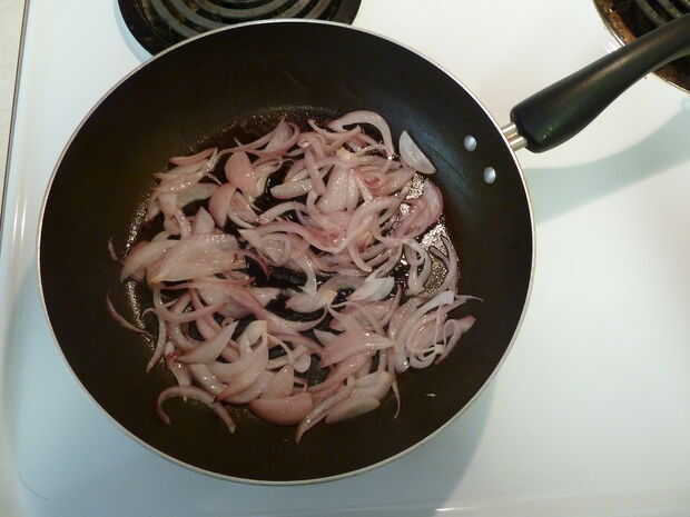 Paso 3: Freír las cebollas rojas en rodajas