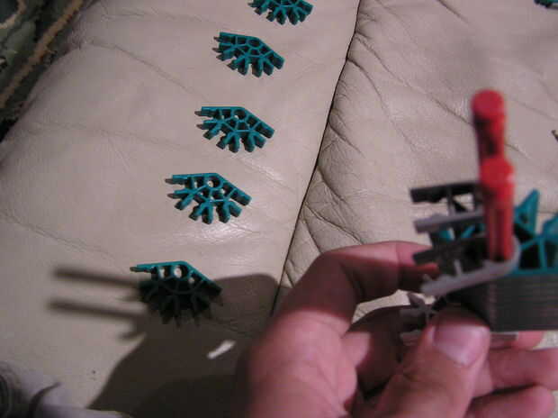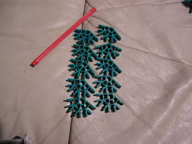 1.) primero coloque estas piezas verdes en la barra roja. 10 conectores verdes.