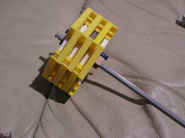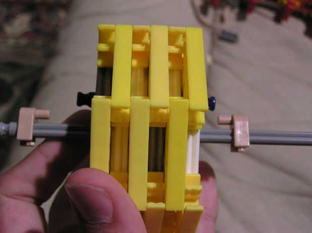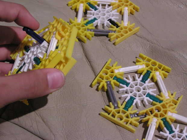 3.) conecta con una barra azul, usando los espacios en los tres primeros para la conexión.