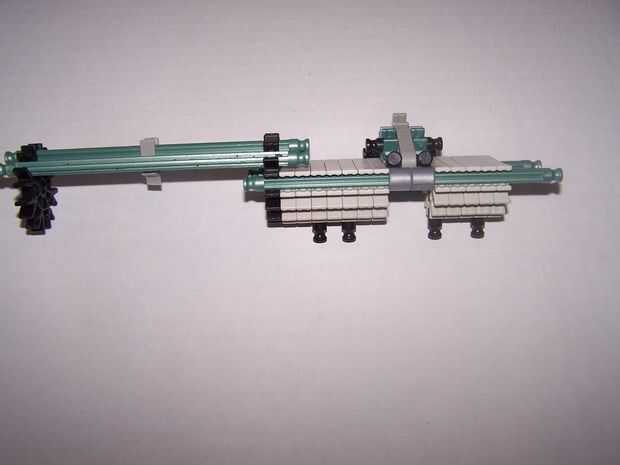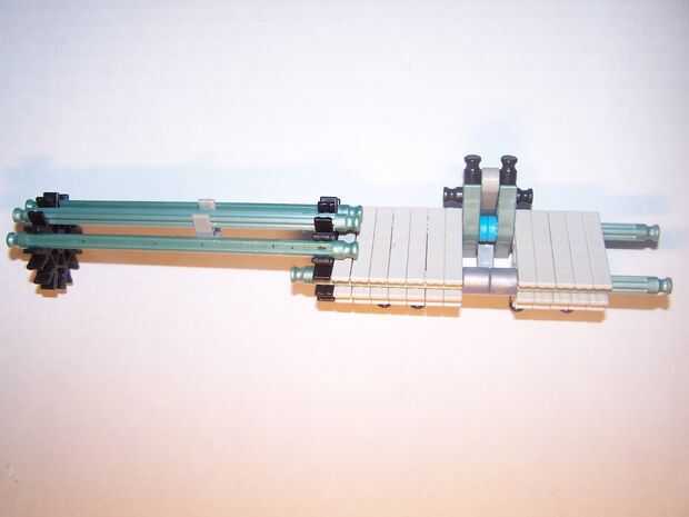 es un simple arma decidí construirPaso 1: cuerpo Paso 2: gatillo La pieza blanca es la seguridad, la retirada cuando esté listo para disparar y enrosque el conector blanco/púrpura en el gatillo, por ello permitiendo que la corredera gatillo a través