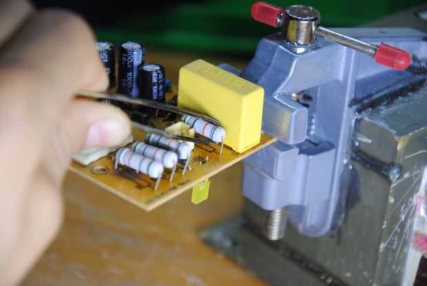 Muchos componentes son difíciles de desoldar, por lo que mayoría de la gente pegarse un destornillador el componente, desoldarlo y luego recogerla hasta ponerlo en su lugar con las pinzas. Para facilitar el proceso: tire o empuje hacia fuera con las pinzas y colocarla en su lugar. Esto también limita la oportunidad del componente volando fuera del tablero, no sólo puede conseguir de perdido, pero también puede ser peligroso