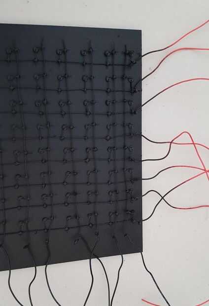 Así que la siguiente parte, como se puede saber por la fotografía, es soldar los cables en la parte inferior y los lados. Así que quitar la cinta, mostrando ese alambre desnudo dejaste! Recuerde, las filas eran positivas, así la soldadura el rojo a las filas y el negro a las columnas... Corte el alambre de cobre extra, y luego, lo has adivinado it...give esta cosa otra ráfaga agradable con Plasti Dip!